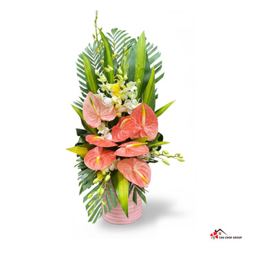 Chu Choa Shop Hoa chuyên thiết kế bình hoa dâng lễ/hoa bàn thờ Phật với tông màu thanh nhã, trang nghiêm, phù hợp cho các không gian tâm linh tại gia hoặc tại Chùa.