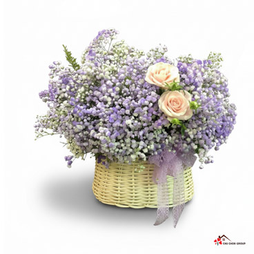 Giỏ hoa Baby (Gypsophila), với hàng ngàn cánh hoa nhỏ xinh, luôn là ngôn ngữ ngọt ngào và tinh tế nhất để bày tỏ tình yêu.