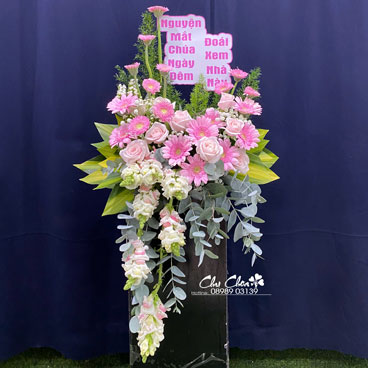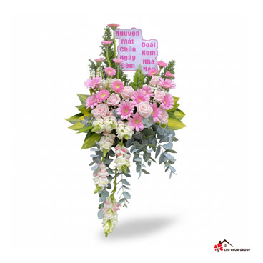 Chu Choa Shop Hoa chuyên thiết kế hoa tôn kính, hoa tuần (hoa dâng lễ) với tông màu Hồng Phấn/Trắng thuần khiết và trang nghiêm, phù hợp đặt trên bệ thờ, nhà thờ, hoặc các sự kiện tâm linh quan trọng.